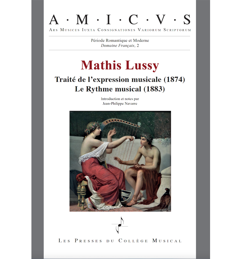 Mathis Lussy (1828-1910) laisse une trace durable dans l’histoire de la musique grâce à ses deux traités sur l’expression musicale (première édition en 1874) et le rythme musical (première édition en 1883). Il y aborde toutes les composantes de l’expression en musique : accentuation, phrasé, articulations, mouvement, nuances. La clarté de ses exposés et le nombre important d’exemples en font une référence pour l’analyse de la musique romantique. Il ne cessera d’enrichir ses deux livres au cours de nombreuses rééditions qui attestent de leur succès.